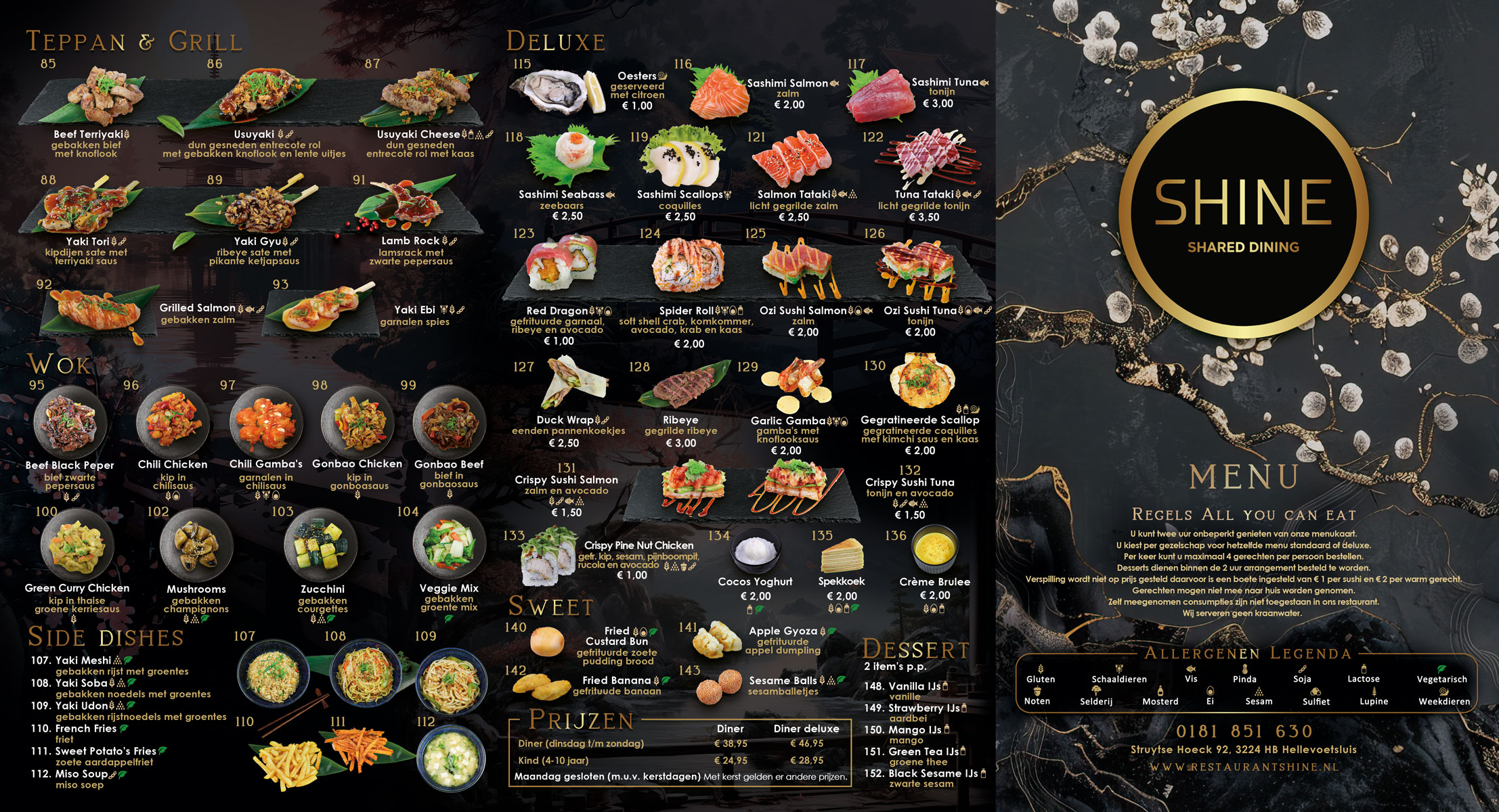 Maandag is restaurant Shine gesloten. M.u.v. Kerst, Valentijnsdag en Koningsdag